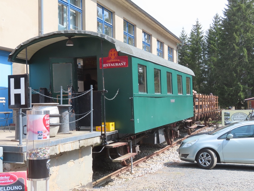 Aan de uitgang kan je nog even wat drinken in een heuse treinwagon. Bezoek geslaagd zou ik zeggen.