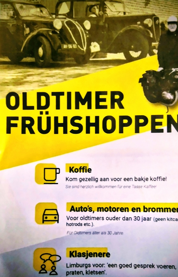Henk Brauer, Henk Cox en Benno Kroese vinden het fijn als om mensen met rollend erfgoed een ongedwongen een gezellige morgen te bezorgen onder de noemers OldtimerFrühshoppen Cars, Koffie en Klatjeneere. En dat in een heel bijzondere en passende omgeving ( Modus heeft in zijn middeleeuwse boerderij vele winkeletjes met vintage etc. spullen, Tijdens dat klatsjeneere worden vanzelf tips en tricks over de instandhouding, duurzaam gebruik etc. met elkaar gedeeld. Twee keer per jaar is er ook een Oldtimercarbootsale. Die is wel alleen beperkt is tot de carboot en oldtimer gerelateerde spullen.
